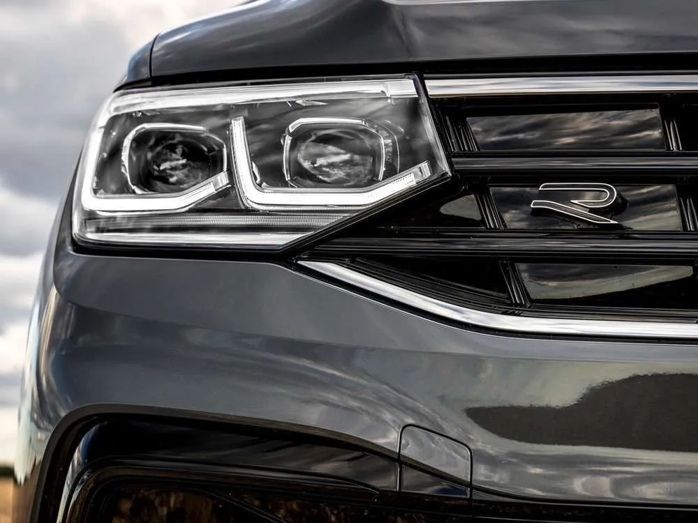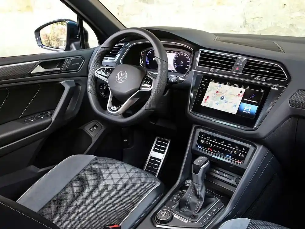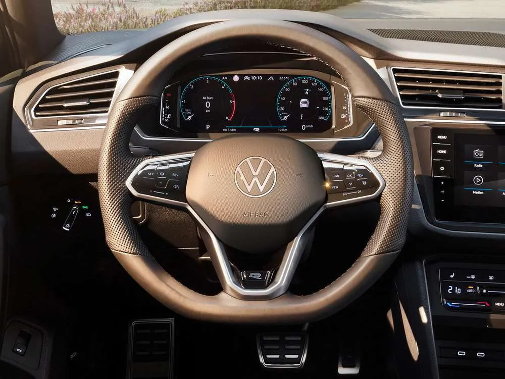 • Многофункциональное кожаное рулевое колесо R-Line, с сенсорными кнопками и подрулевыми переключателями