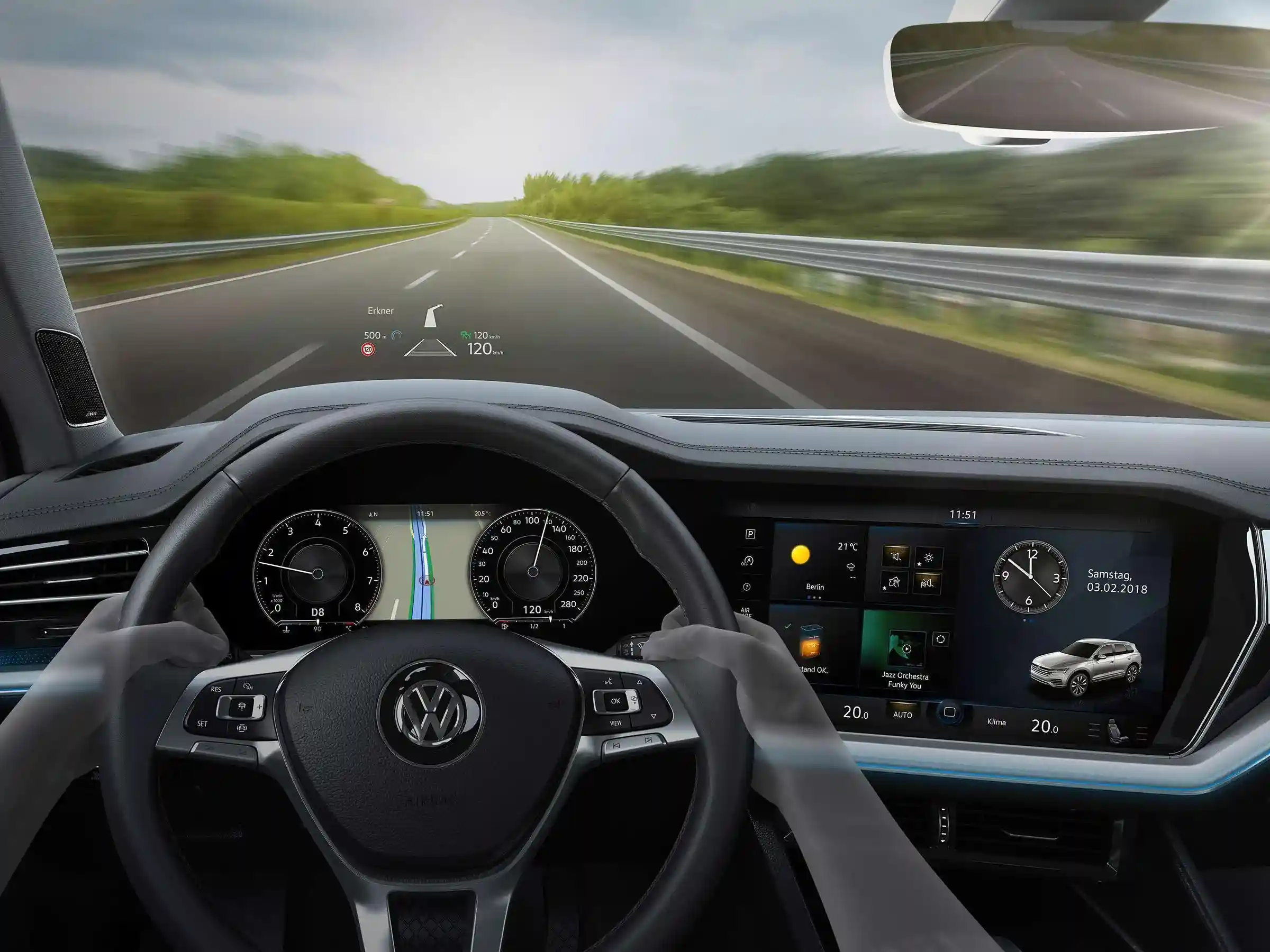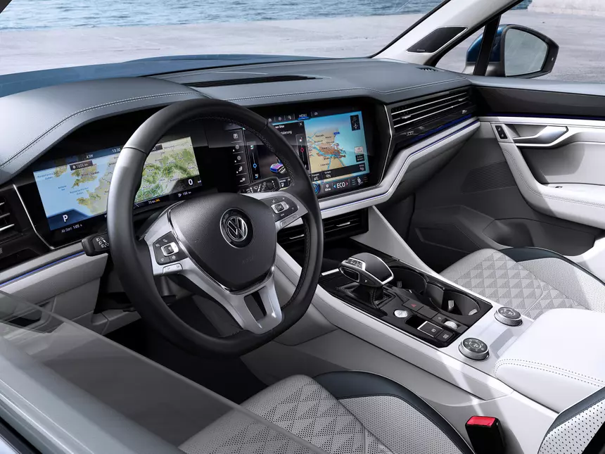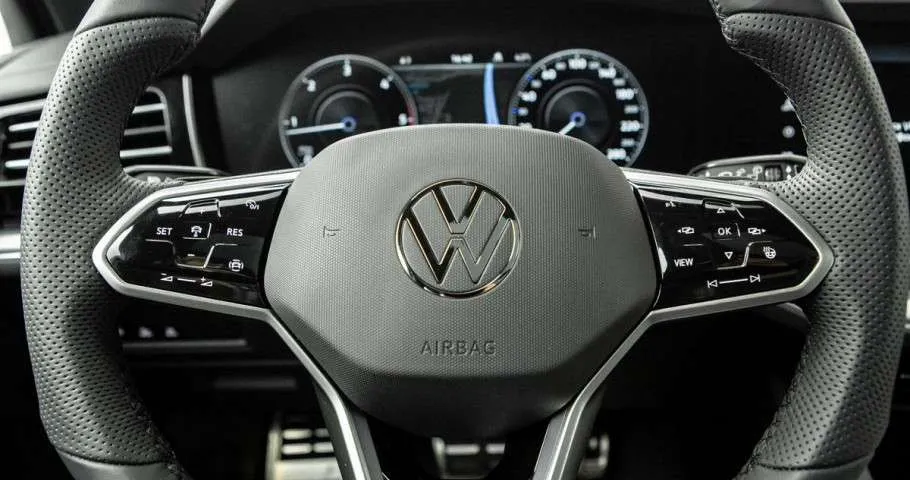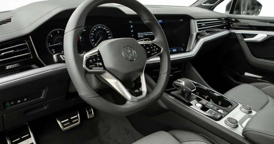 - Мультифункциональное рулевое колесо с кожаной отделкой, обогревом, подрулевыми переключателями и логотипом R-line