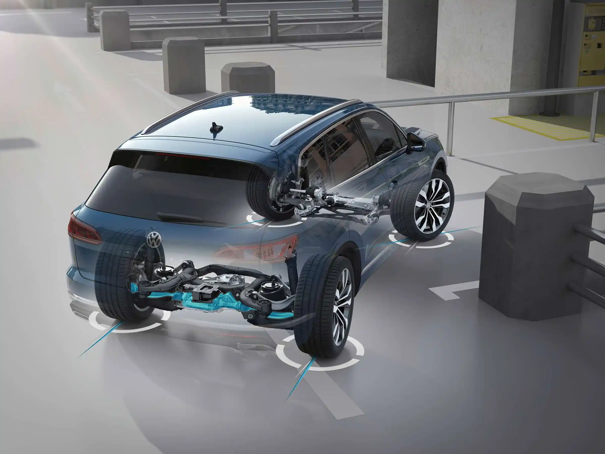 - Пневмоподвеска с электронной регулировкой клиренса и жесткости с выбором режима движения